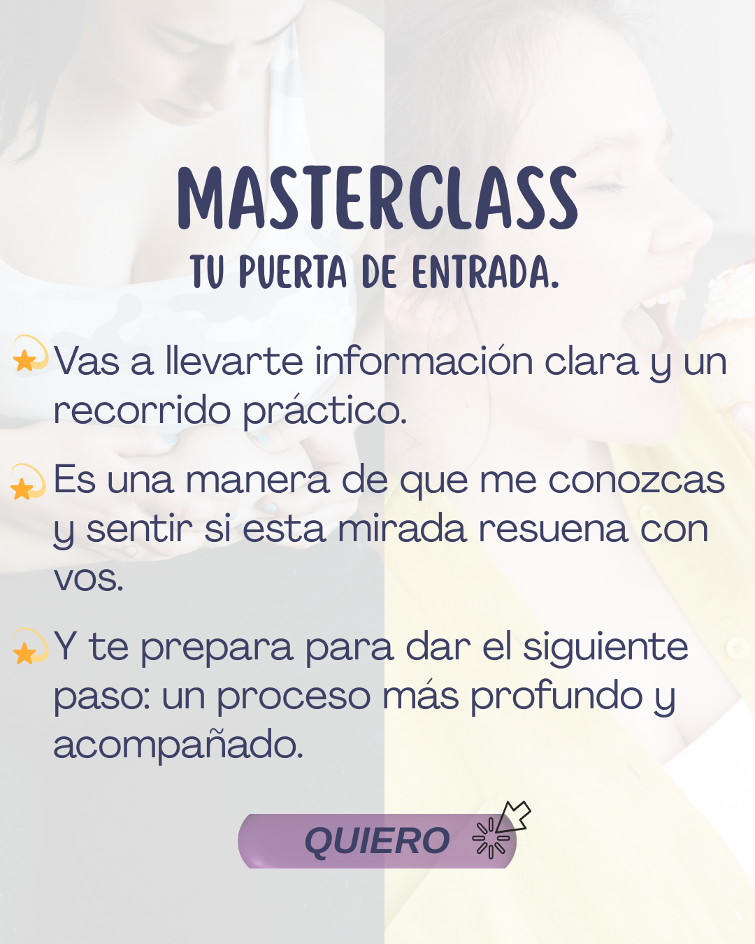 Por eso, mi trabajo no se centra en prohibiciones ni planes rígidos, sino en acompañarte a descomprimir tensiones, reconectar con tu cuerpo y encontrar más libertad y disfrute al comer y al habitarte.